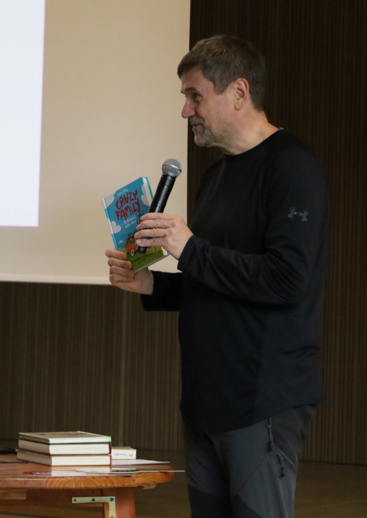 Am Donnerstagvormittag herrschte im Musiksaal der Lembergschule eine ganz besondere Stimmung: Die Schülerinnen und Schüler durften einen echten Autor kennenlernen! Markus Orths war zu Gast und las aus seinen Büchern „Das Zebra unterm Bett“ und „Crazy Family“ vor.