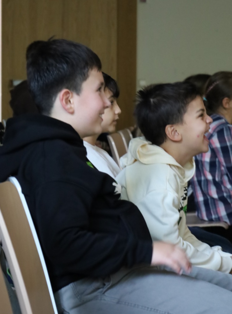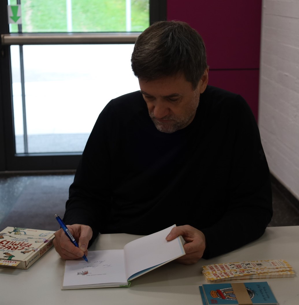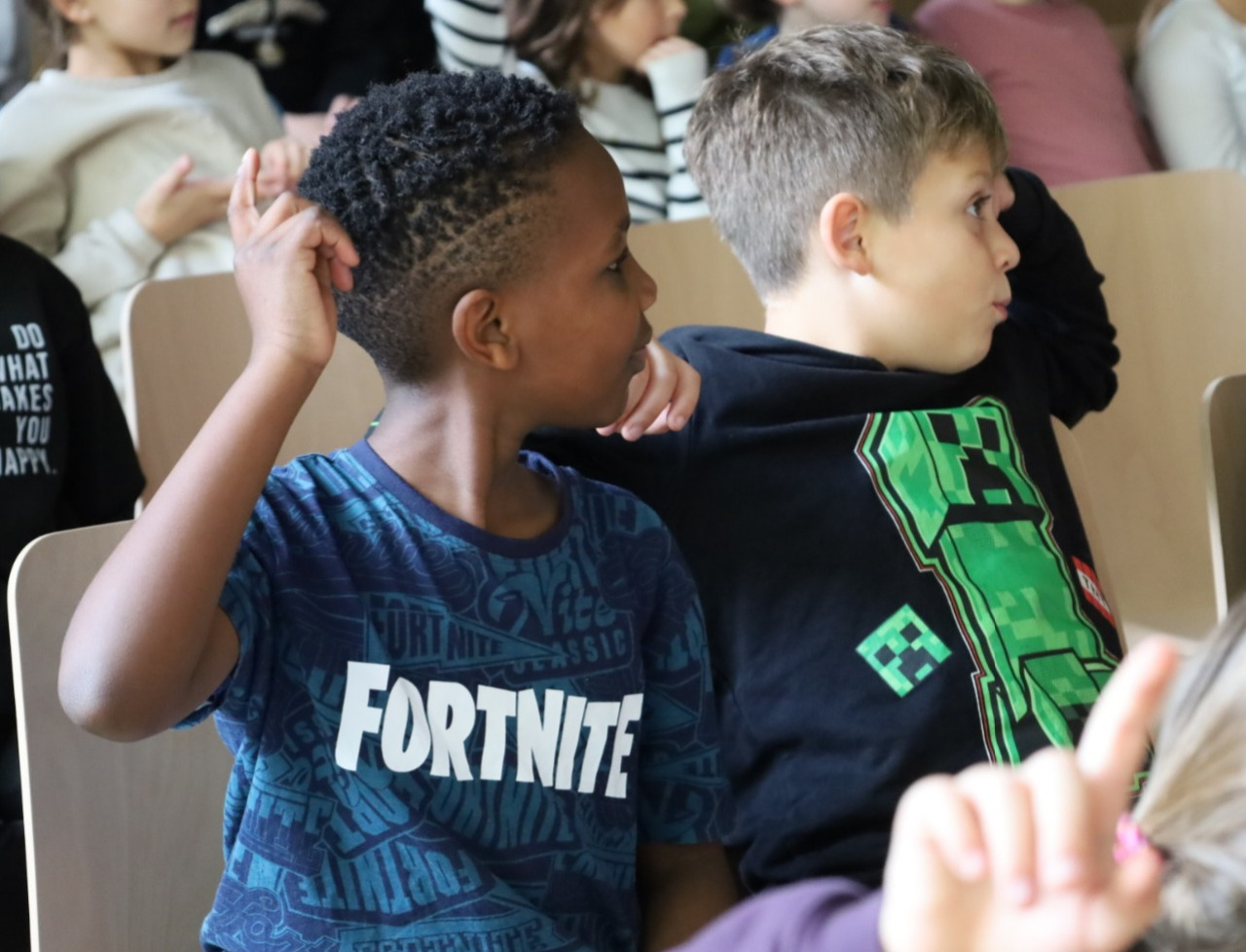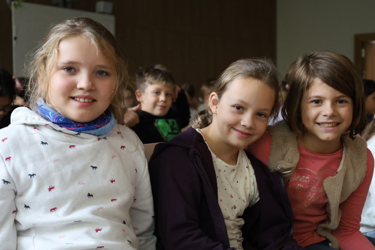 Mit viel Humor und spannenden Geschichten zog der aus Karlsruhe angereiste Autor die jungen Zuhörerinnen und Zuhörer sofort in seinen Bann. Nach der Lesung durften die Kinder viele Fragen stellen: „Wie viele Bücher hast du schon geschrieben?“, „Welche Person aus deinen Büchern magst du am liebsten?“ oder auch „Was ist dein Lieblingsfußballverein?“ Geduldig beantwortete Markus Orths die Fragen der Schülerinnen und Schüler. Zum Abschluss signierte der Gast noch Bücher und Lesezeichen.